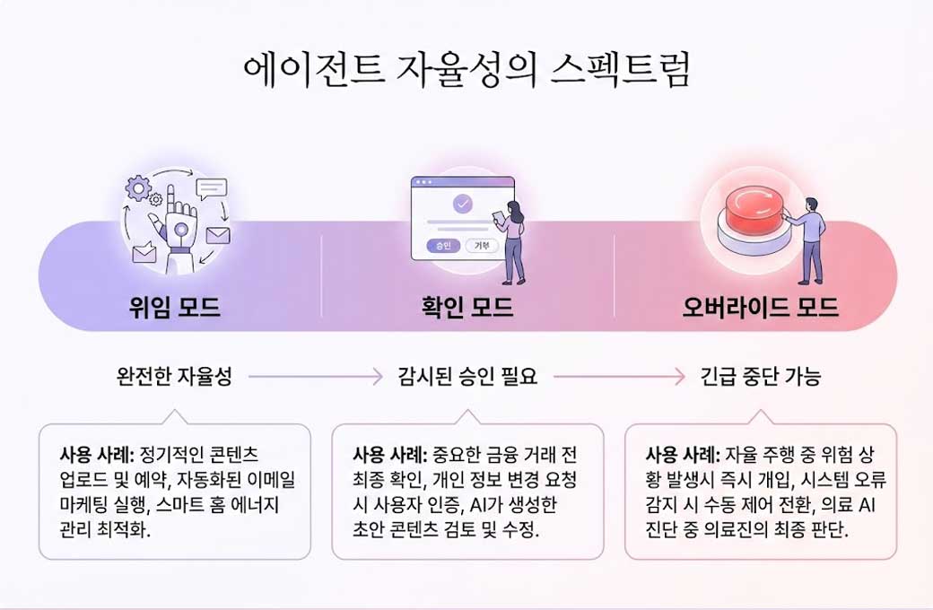 Microsoft Copilot의 사례를 보면, 처음 사용자는 모든 작업에 대해 "이렇게 할까요?"를 물어보지만, 시간이 지나면서 사용자의 피드백을 학습하여 점차 자율성을 높입니다.
