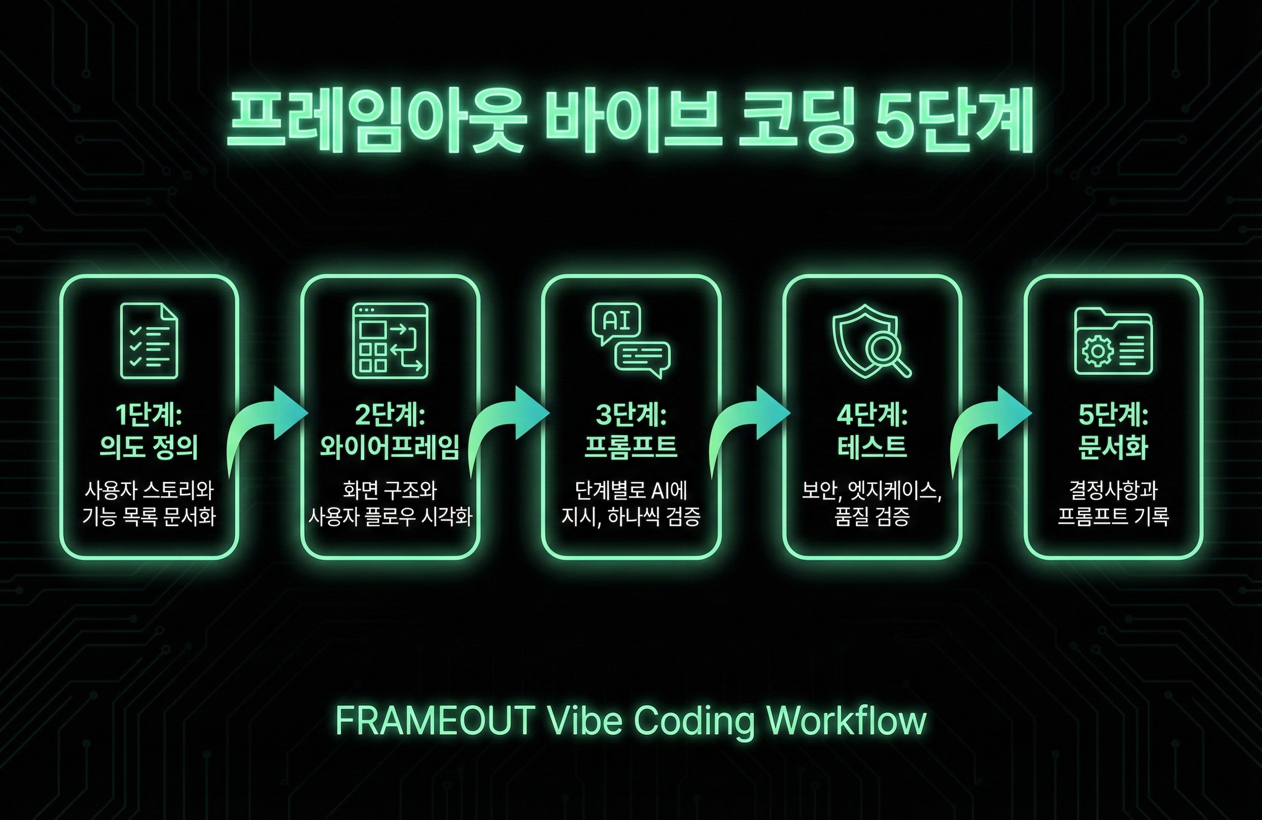 바이브 코딩에서 성공과 실패를 가르는 것은 '어떤 도구를 쓰느냐'가 아니라 '어떤 프로세스로 접근하느냐'입니다. 생산적인 바이브 코딩과 혼란스러운 프롬프팅의 차이는 구조에 있습니다. 프레임아웃이 실무에서 검증한 5단계 워크플로우를 공유합니다.